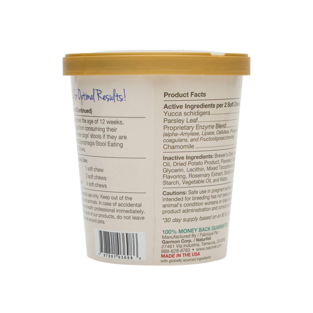 Ayuda a disuadir a los perros de consumir sus propias heces u otras heces de perros si se les dan los masticables suaves NaturVet Coprophagia Stool Eating Disuasion.