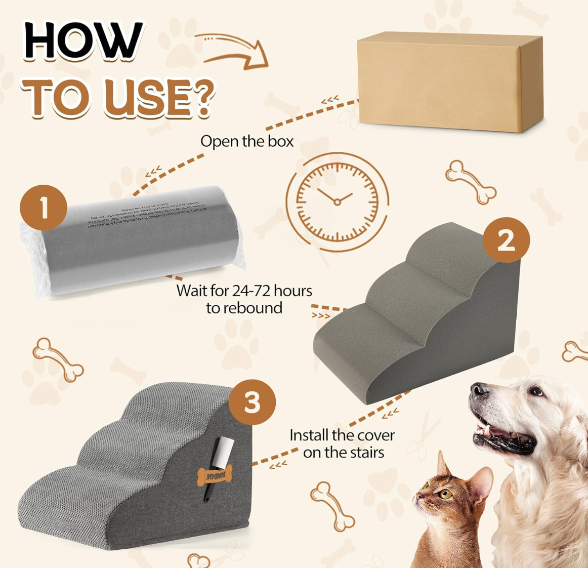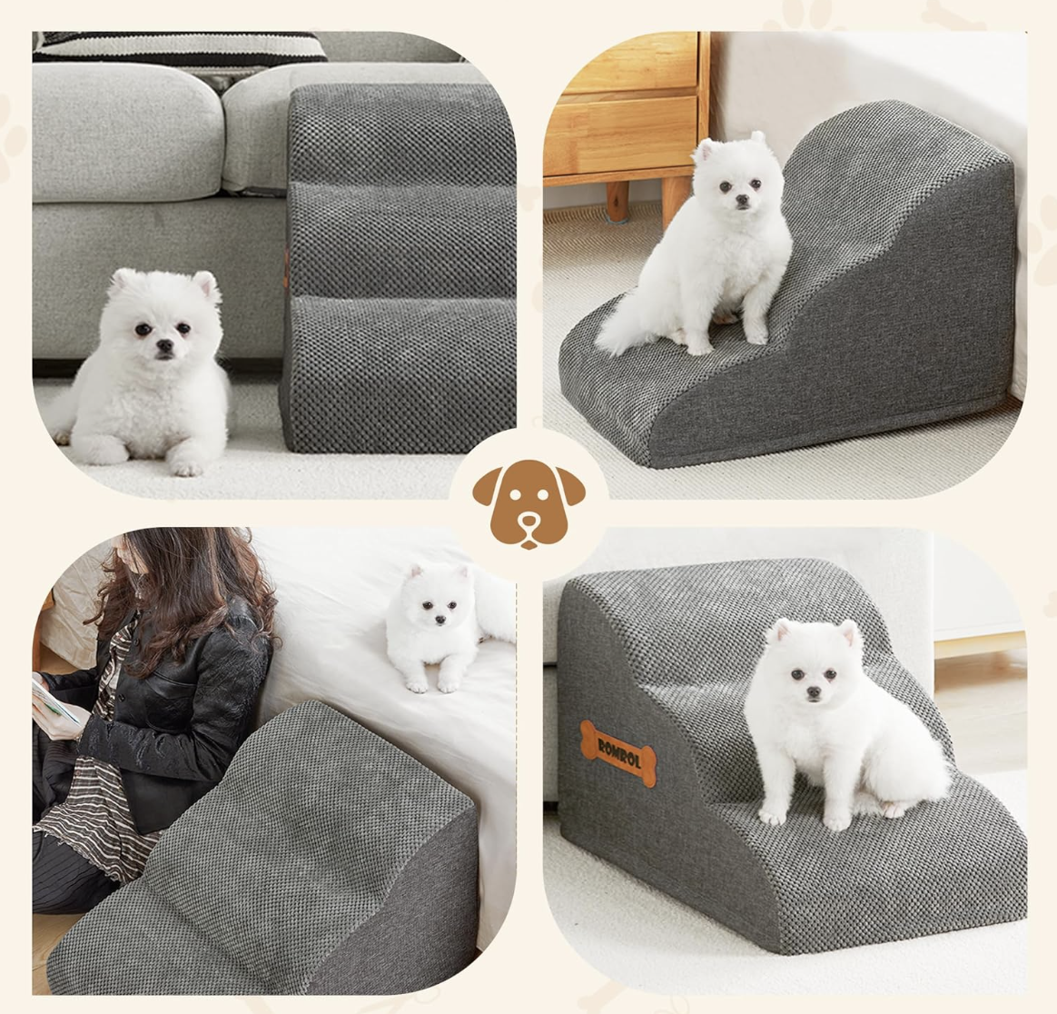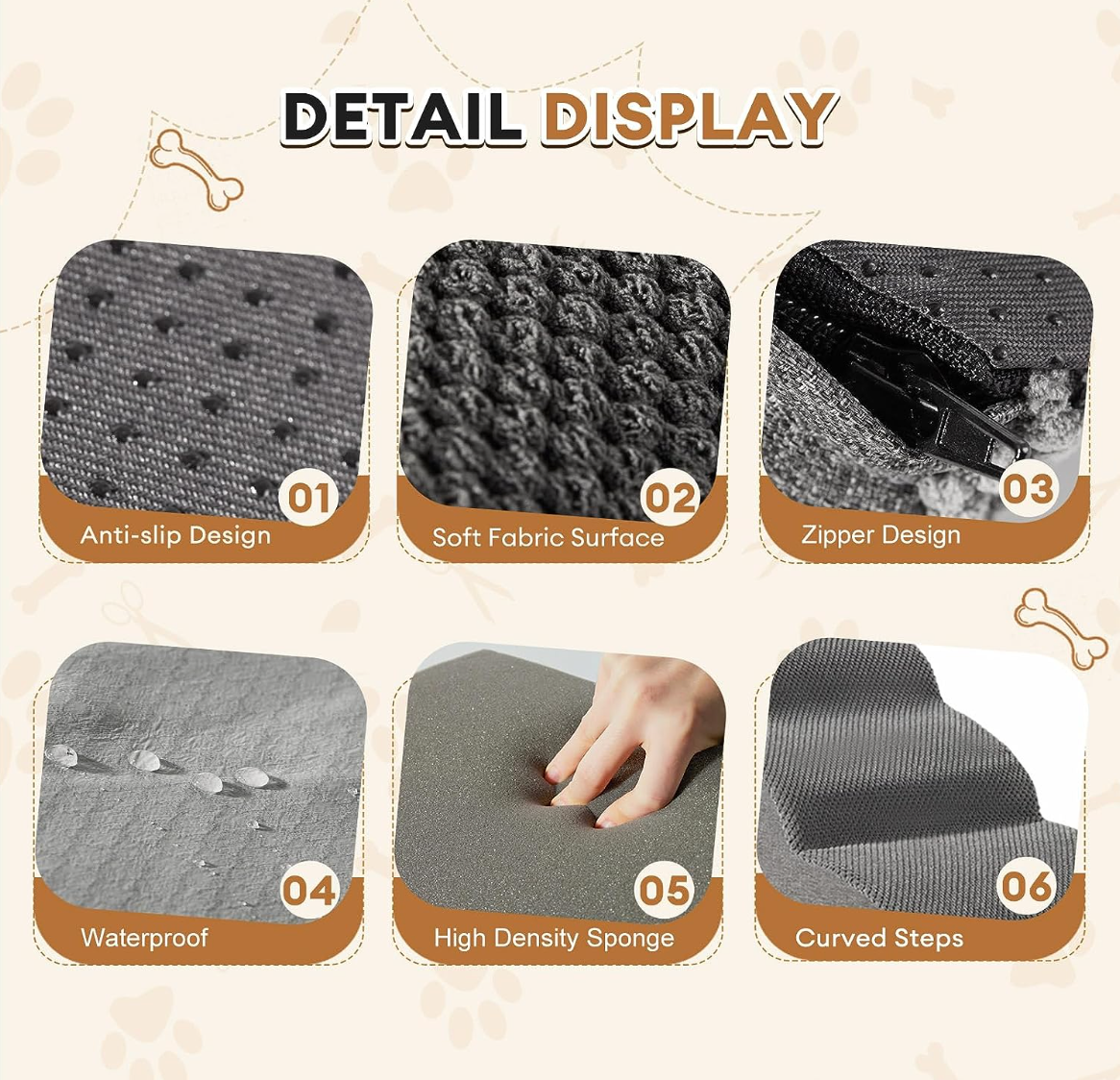 -Escalones extra anchos para mascotas con cubierta de tela duradera antideslizante impermeable.