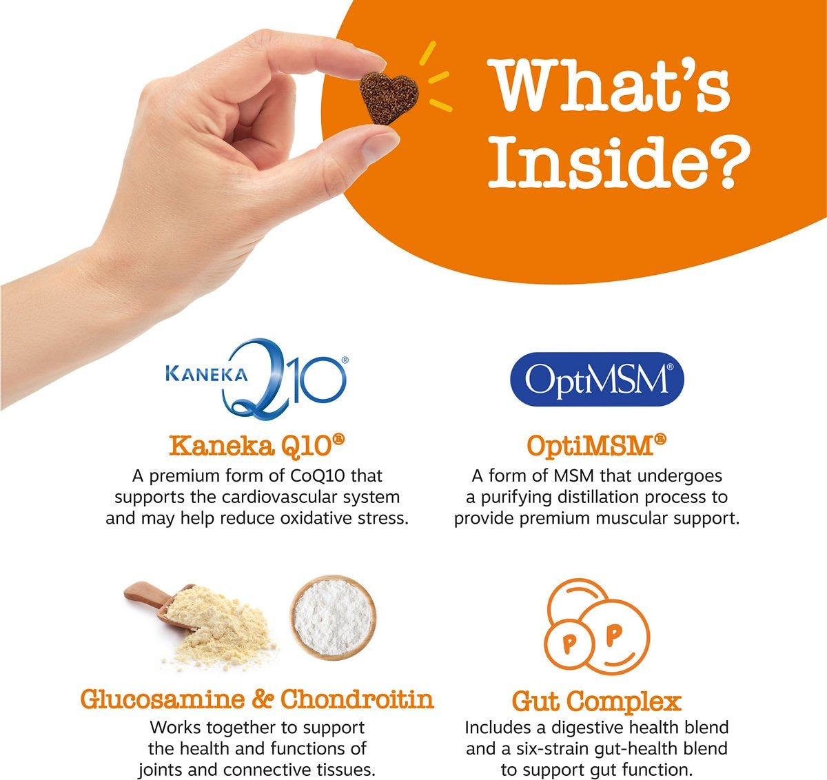 • Producto de calidad con OptiMSM®, Kaneka Q10®.